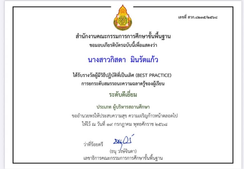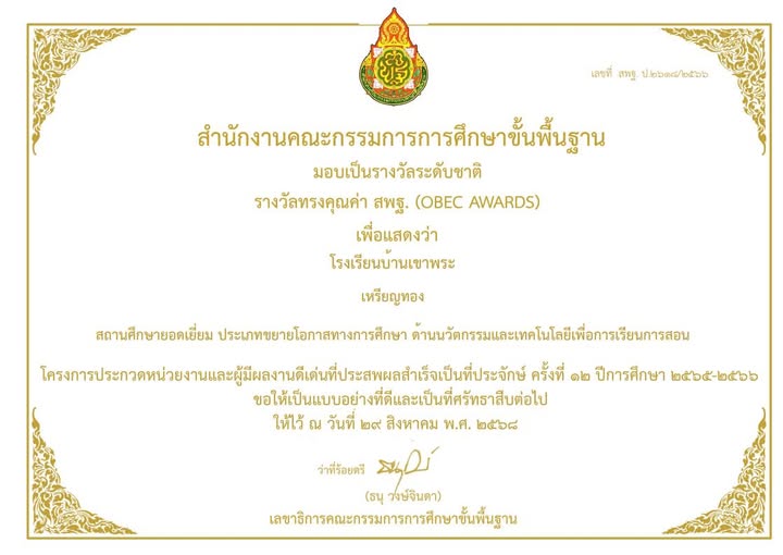 โรงเรียนบ้านเขาพระได้รับรางวัล IQA AWORD ประจำปี 2566 16 พ.ย. 67